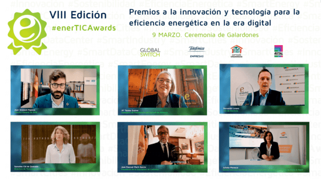 La Plataforma enerTIC celebró el pasado martes, día 9 de marzo, la ceremonia de entrega de la VIII Edición de sus premios anuales, que tienen como principal objetivo identificar, premiar y divulgar los proyectos tecnológicos innovadores realizados por empresas y organizaciones comprometidas con la eficiencia energética y la sosteniblidad, y a los directivos de referencia que han fomentado buenas prácticas, inspiradoras para otros directivos y profesionales.