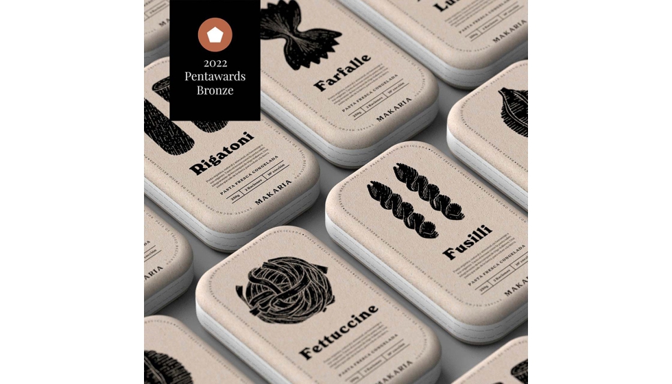 El proyecto Makaria apuesta por la sostenibilidad al presentar un envase hecho a partir de un subproducto del trigo que no es comestible y que, de otra forma, se desecharía. De esta manera, la pasta fresca congelada se presenta en un envase cuya parte superior cuenta con ilustraciones sobre el tipo de pasta del que se trata. Este concepto es una alternativa al envasado en plástico que recicla residuos, es biodegradable y puede servir de inspiración a marcas que pretenden alinearse con valores de sostenibilidad.