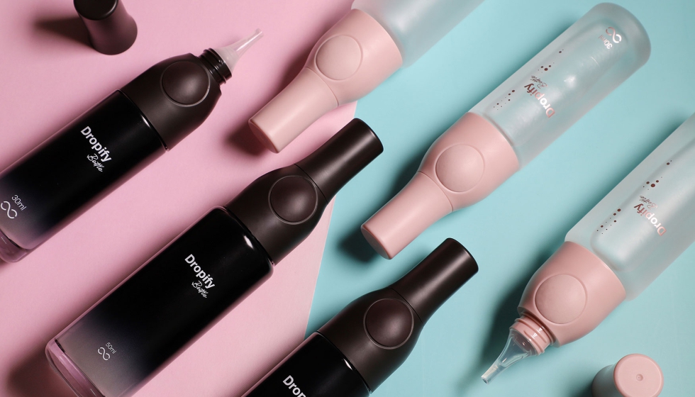 Dirigido a marcas cosmecéuticas y de nivel masstige o premium, Dropify Bottle combina la funcionalidad farmacéutica con un diseño sofisticado. Su estética se puede personalizar con diversas técnicas de decoración, como degradados de color en el frasco y acabados mate en el aplicador.