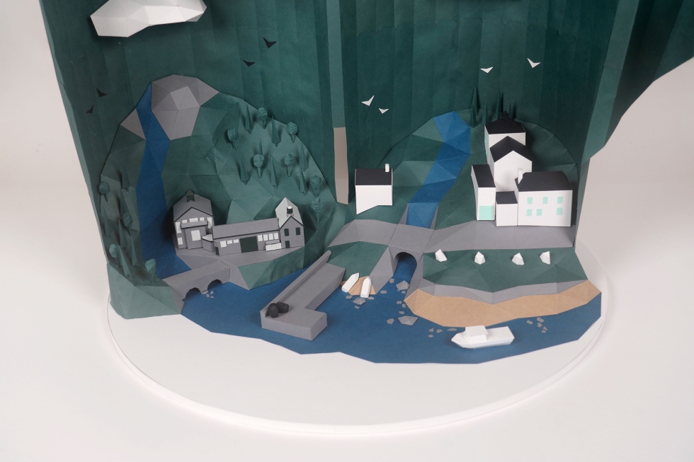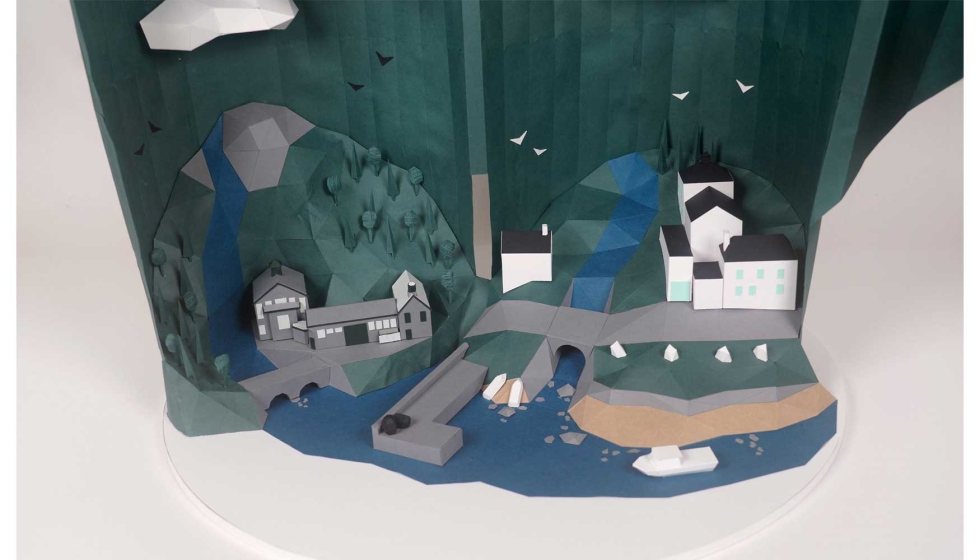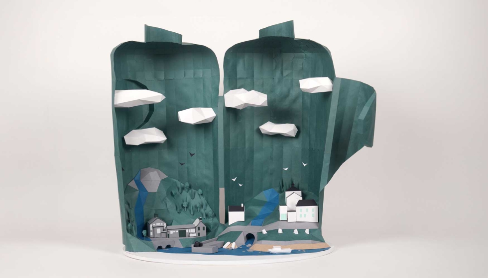 La obra conmemora los 180 años de trayectoria de James Cropper y refleja su apuesta por la innovación en el diseño de embalajes. En concreto, remite a su reciente colaboración con la destilería escocesa Bruichladdich, para la que desarrolló un embalaje premiado a base de fibra moldeada dentro de su línea Luxury Re/defined. El diorama representa tanto la destilería en la isla de Islay como el histórico molino de Burneside, sede de James Cropper, como símbolo de la conexión entre ambas compañías.