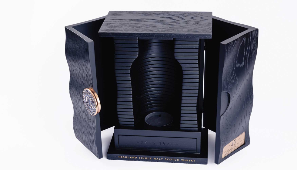 Lo que parece natural y sencillo es, en realidad, el resultado de una ingeniería compleja, un prototipado rápido y una artesanía digital avanzada. Esta combinación perfecta entre lo antiguo y lo moderno refleja la doble identidad del whisky: envejecido pacientemente en oscuros almacenes costeros, pero presentado con precisión contemporánea.