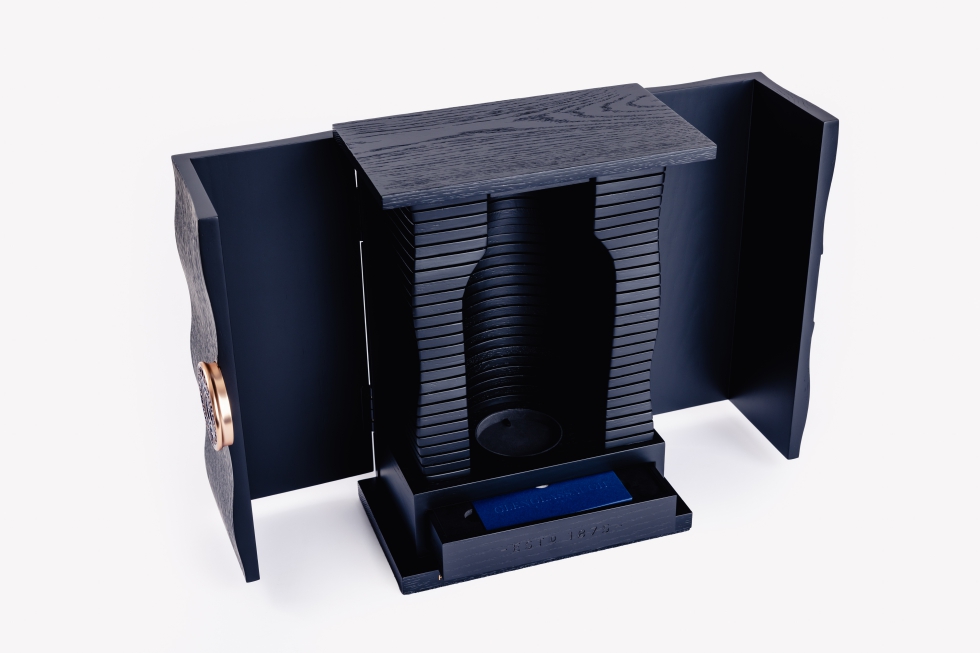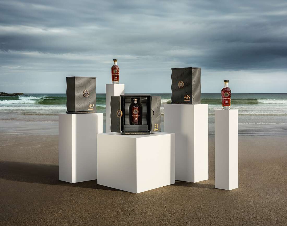 Esta mezcla de acabado artesanal y precisión digital refleja el espíritu que contiene: moldeado a lo largo de décadas, refinado con intención. Las lamas internas que acunan la botella evocan los patrones de la madera tallada por las mareas, mientras que un discreto mecanismo de cajón que se abre al presionar realza la revelación sin alterar la pureza de la forma. Una placa grabada en cada estuche detalla el número de barril y el destinatario, lo que hace que cada edición sea no solo limitada, sino también profundamente personal.