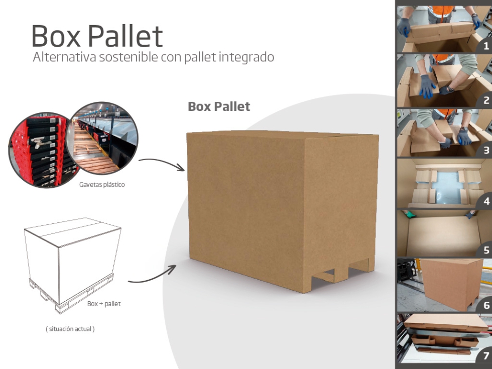 Pallet Box (DS Smith, una empresa de International Paper): Pallet integrado de cartón ondulado, que optimiza espacio y sostenibilidad.