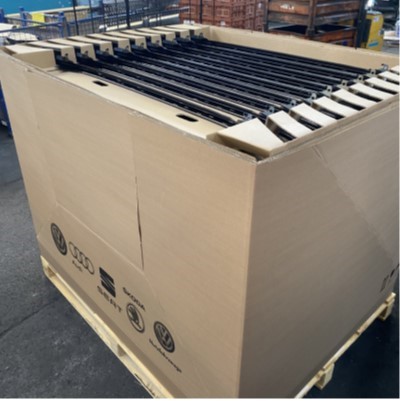 Contenedor monomaterial para piezas pintadas de automoción (Font Packaging Group): Contenedor de cartón reciclado para piezas delicadas, que elimina espumas plásticas.