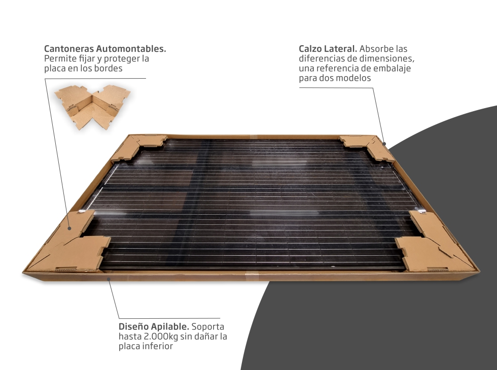 Embalaje con cantoneras automontables para placas solares (DS Smith Tecnicarton): Solución robusta y sostenible para el transporte de placas solares.