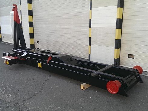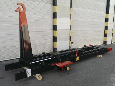 Equipo nuevo de 10 ton., para camión de dos ejes, con brazo telescópico y nueva versión de perfil bajo. Incluye mandos neumáticos en cabina y depósito de aceite, así como bloqueo exterior de carrocerías y gancho embulonado.