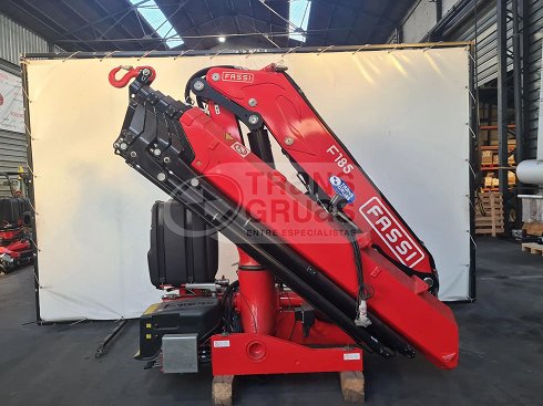 Grúa hidráulica Fassi F185A.2.26 xe-dynamic en entrega inmediata. La grúa cuenta con seis extensiones hidráulicas y alcance de 16,95 m y carga en punta de 555 kg. (a pie de camión la potencia de carga es de 5.050 Kg). Incorpora 2 bielas, sistema PROLINK (que permite aumentar el ángulo de trabajo sobre la línea horizontal en 10-15º), distribuidor D850 y dispositivo compensador de caudal (FS), radiomando Scanreco mini de 6 funciones y dispositivo XP (reserva de potencia). Incluye juego de estabilizadores extra extensibles hidráulicos a 5.820 mm. Disponible en entrega inmediata, fabricada en 2023, grúa nueva. Descargue la ficha de la grúa para más información y vea el diagrama de cargas del modelo.