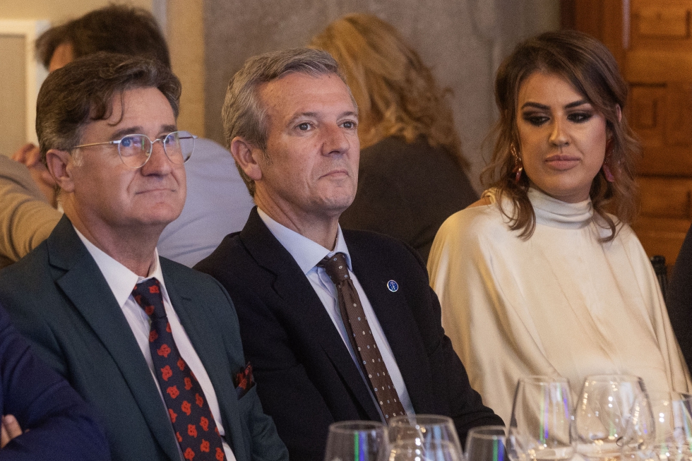 De izq a drch: Julio López, vicepresidente de Fegaes; Alfonso Rueda, presidente de la Xunta de Galicia, y Javier de Antonio, presidente de CEEES