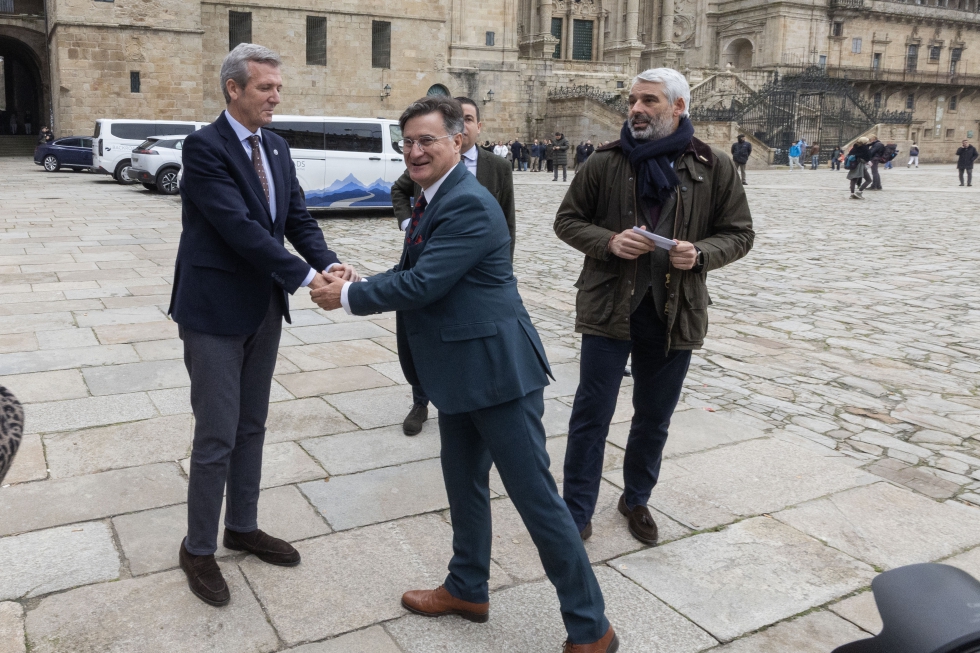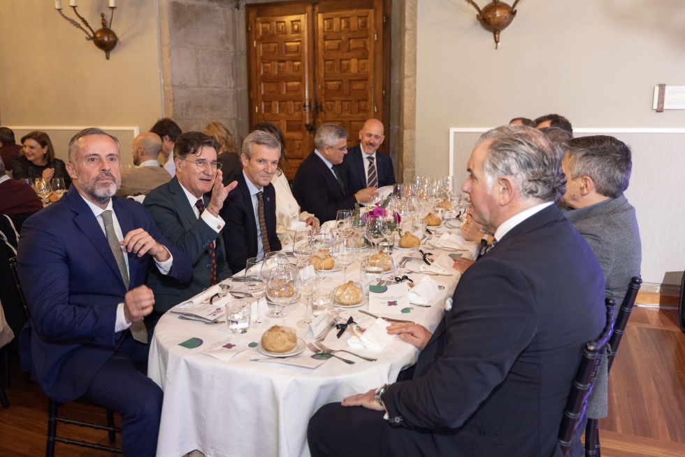 Tras los actos religiosos, los asistentes se dirigieron al Parador Nacional Hostal dos Reis Católicos, donde tuvo lugar el almuerzo institucional. La cita reunió a destacadas autoridades, entre ellas el presidente de la Xunta de Galicia, Alfonso Rueda, la conselleira de Economía e Industria, María Jesús Lorenzana, así como los presidentes de CEEES y Aevecar. También participaron representantes del ámbito empresarial, institucional y asociativo.