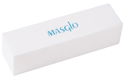 1) Retira la parte escamada o levantada pasando el Bloque Blanco Masglo sobre el borde libre de la uña, con movimientos descendentes (hacia el borde).