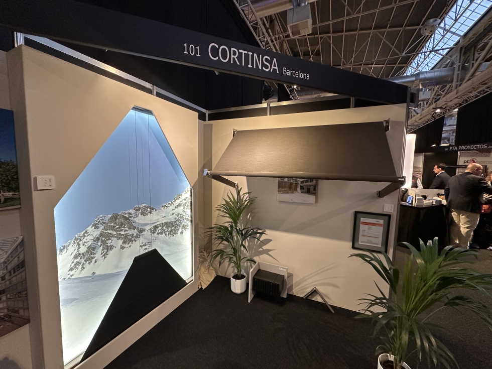 Cortinsa exponía en Architect@Work Barcelona su cortina Inverter, en formato triangular y con recorrido ascendente, pensada sobre todo para ventanas triangulares propias de viviendas situadas en zonas residenciales de montaña. Es una cortina pensada para tejidos ‘Black Out’ para dormitorios, aunque también puede incorporar tejidos tipo ‘screen’, no tan opacos. También se presentó su modelo de toldo punto recto, presentado en esta ocasión con brazo en madera bambú, en diseños redondeado y cuadrado. Permite una apertura hasta casi 180 grados de inclinación.