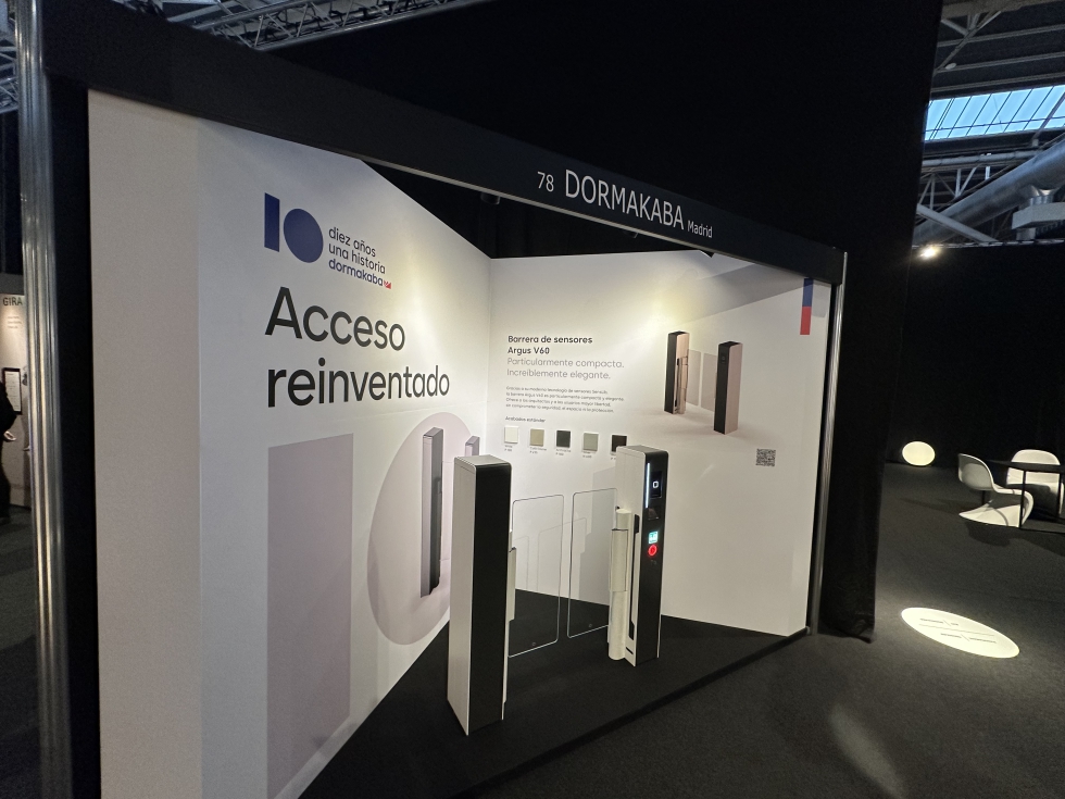 La firma Dormakaba presentaba su barrera de sensores Arbus V60, única del mercado en formato vertical. Es una barrera que ofrece mayor libertad a los usuarios sin comprometer la individualización de paso y la seguridad de las personas. La nueva tecnología de sensores permite un diseño compacto, con una profundidad del sistema de apenas 240 mm. Su uso está especialmente indicado en recintos con espacio limitado, al ofrecer espacio libre e integrarse de manera elegante en cualquier edificio. Para los arquitectos presenta muchas ventajas desde el punto de vista estético, además de por su diseño compacto y elegante en aluminio, por los diferentes acabados de colores que acepta para estar en armonía con su entorno, como los vestíbulos de edificios donde puedan ubicarse. Permite accesos mediante código QR, teléfono inteligente o tarjeta. Cuenta con sistema de desbloqueo para vías de evacuación, según la norma EN 13.367.