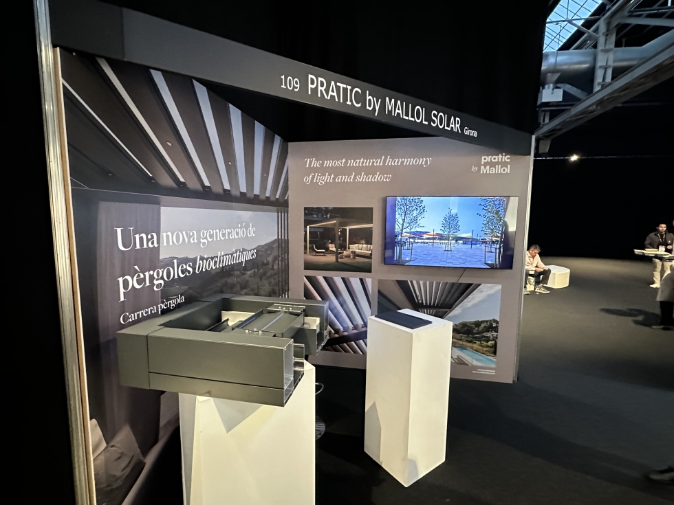 La firma Mallol presentaba la pérgola bioclimática Carrera de la firma Pratic. Esta pérgola se distingue por alternar lamas fijas y móviles que se elevan y se superponen unas sobre otras, siguiendo la inclinación natural de los rayos solares, para recrear en todo momento una perfecta armonía de luz y sombra. En la parte inferior de la pérgola se pueden instalar sistemas complementarios como iluminaciones o ventiladores. También permite instalar toldos verticales, no tipo zip con guías, sino incorporados en el mismo perfil. Las pérgolas Pratic pueden alcanzar unas medidas de 5 metros de ancho de lama y siete metros de salida.