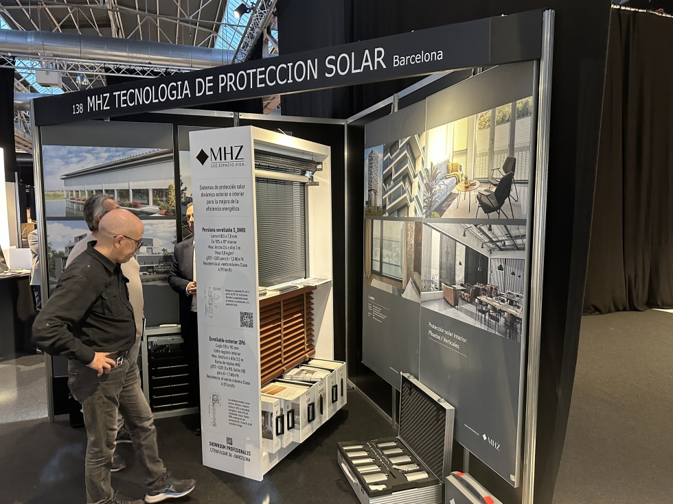 Esta firma presentaba su cortina exterior guiada Zip6. Se ofrece en medidas de 6 metros de ancho por 3,5 de alto, con un cajón de 110 x 110., con un diseño que asegura un aspecto uniforme en toda la fachada. La tecnología patentada de MHZ, evita la flexión del tubo de enrollamiento, gracias a un compensador que permite que el eje se mantenga estable. El sistema puede equipar motor solar, sin instalación eléctrica, y admite toda la gama de tejidos de Soltis y Mermet. MHZ también presentó la persiana enrollable Sonro, con una lama muy minimalista que permite tener una visión del 18% hacia el exterior con la lama abierta, pero con la posibilidad de convertirse en ‘blackout’, con lo que se consigue permitir solo la entrada de luz y se evita hasta en un 92% la incidencia solar dentro del edificio gracias a la inclinación de la lama.