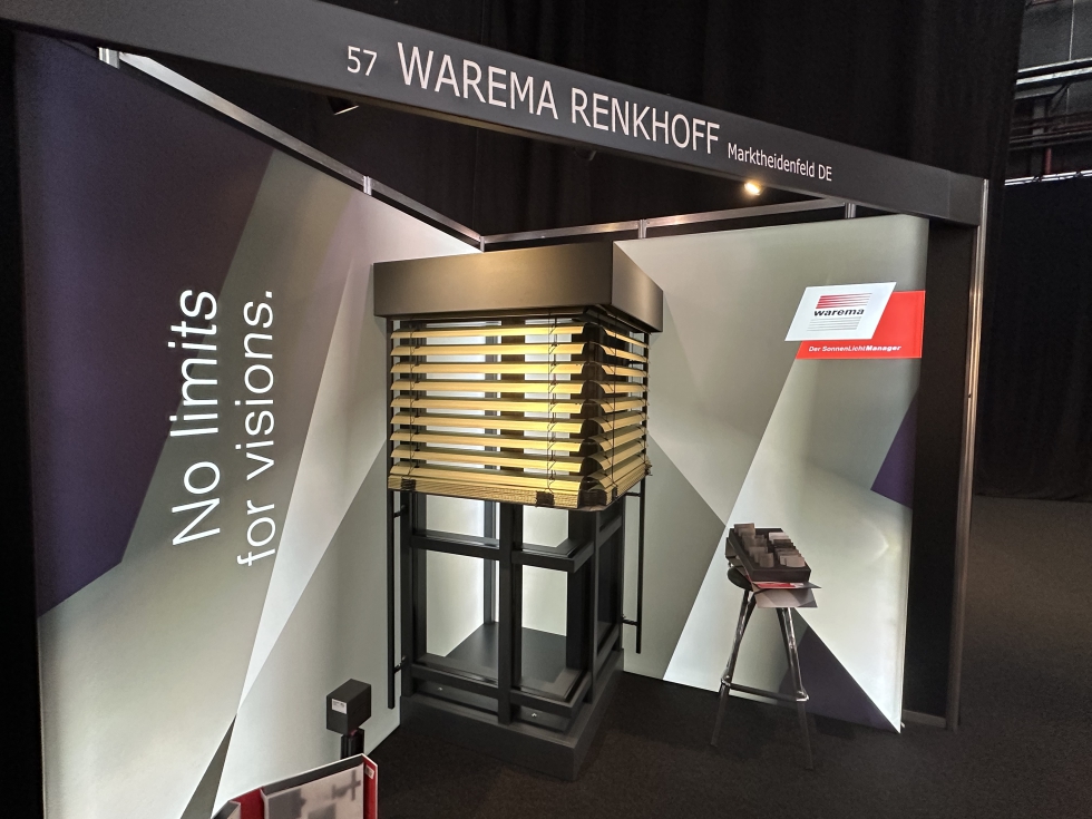 La firma alemana expuso en Barcelona su persiana veneciana en esquina de 90 grados, tanto de instalación interior como exterior, da igual. El sistema se distingue por no necesitar guiado lateral en la esquina, una solución especialmente apreciada por los arquitectos, que prefieren esquinas limpias sin elemento de guiado. Otra novedad de Warema que se presentaba era un sistema de fijación de protección solar, mediante lamas o tejido enrollable, sobre muro cortina. Se trata de una solución de perfil único con guía integrada, formado por dos partes, una facilitada por el fachadista y la otra por Warema.