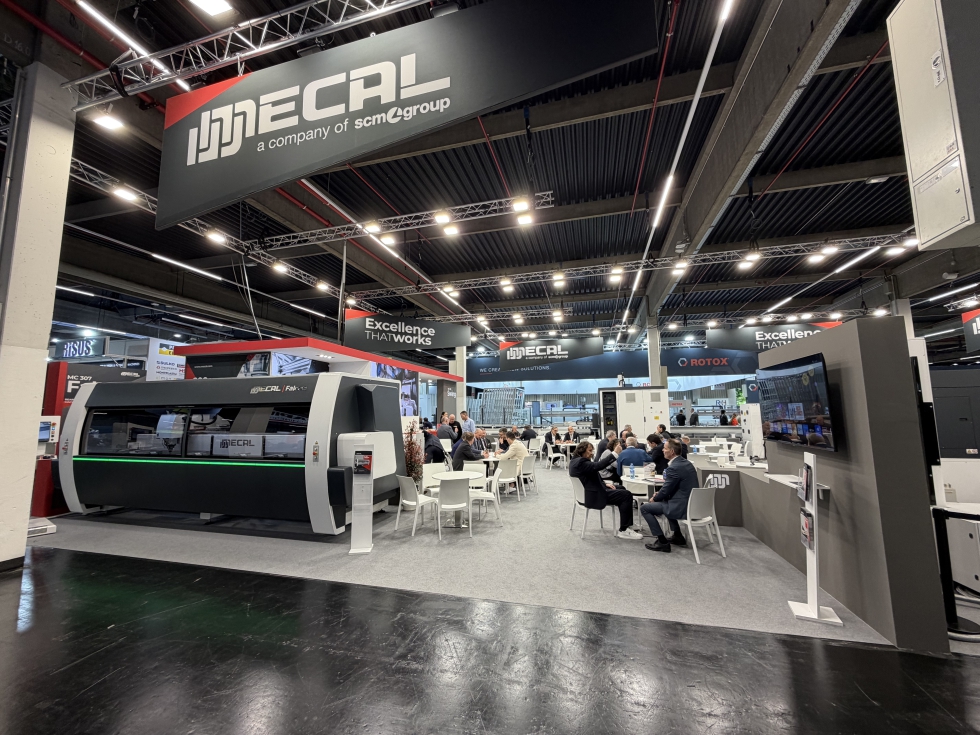 Mecal acudió a Núremberg con una gama representativa de maquinaria para la fabricación industrial de ventanas. La línea automática MC 316 SWING concentró buena parte del interés, al tratarse de una solución capaz de combinar operaciones de corte y mecanizado en una única fase productiva.