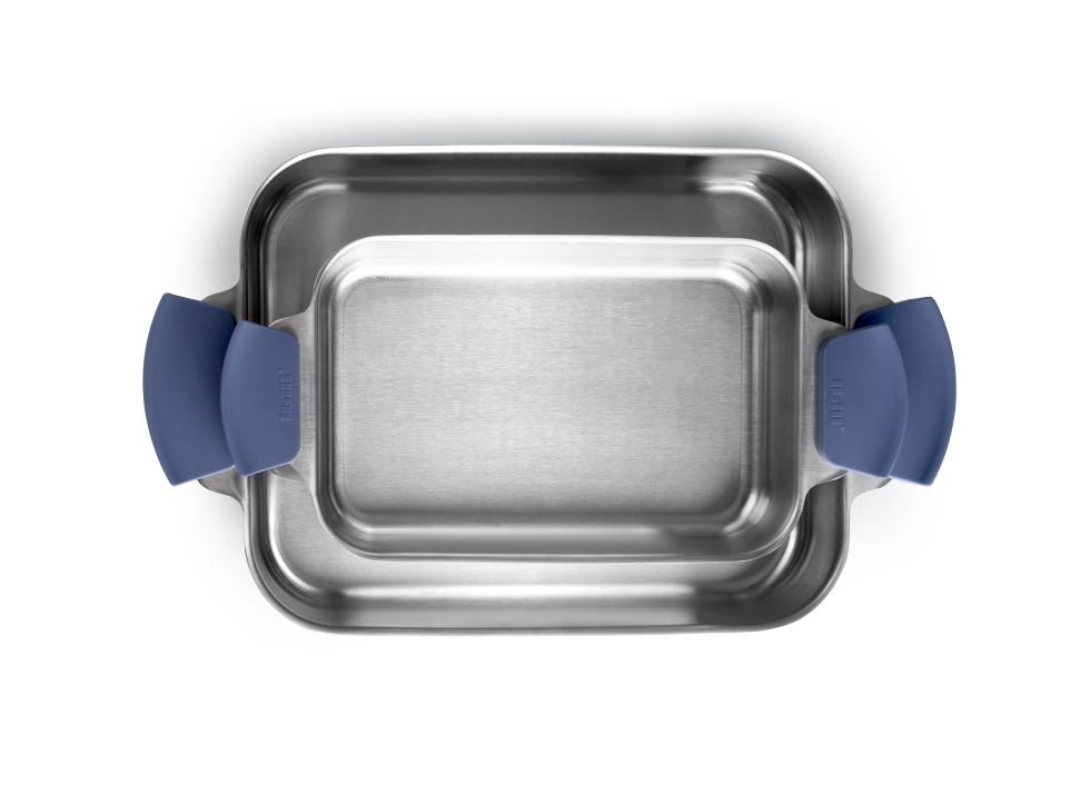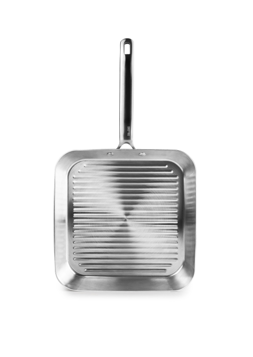 La durabilidad es otro pilar de la colección. Los bordes sellados prolongan la vida útil de las piezas, ya que protegen el aluminio frente al desgaste derivado de usos y limpiezas intensivas. El mango tubular remachado de acero inoxidable está diseñado para reducir la transmisión de calor a la mano y aportar firmeza en el manejo. El mantenimiento es sencillo: las piezas pueden limpiarse con estropajo o introducirse en el lavavajillas sin cuidados adicionales.