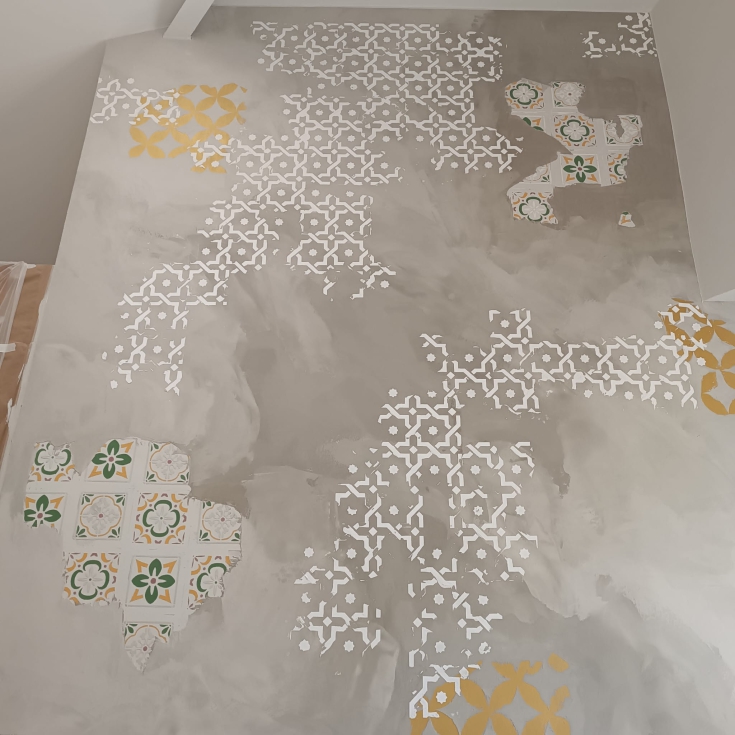 El proyecto ‘Aires Modernistas’ fue el ganador de la Brocha de Oro, reconocimiento al mejor proyecto de pintura del 2025. La obra, realizada por Xavi Riera y Sergio Moreno de la empresa Colorín Colorado Pintors, rinde homenaje a los suelos hidráulicos usados en la Barcelona Modernista y al paso del tiempo. El mural fue elaborado en el salón de una vivienda particular construida en 1911 por Joan Busquets.