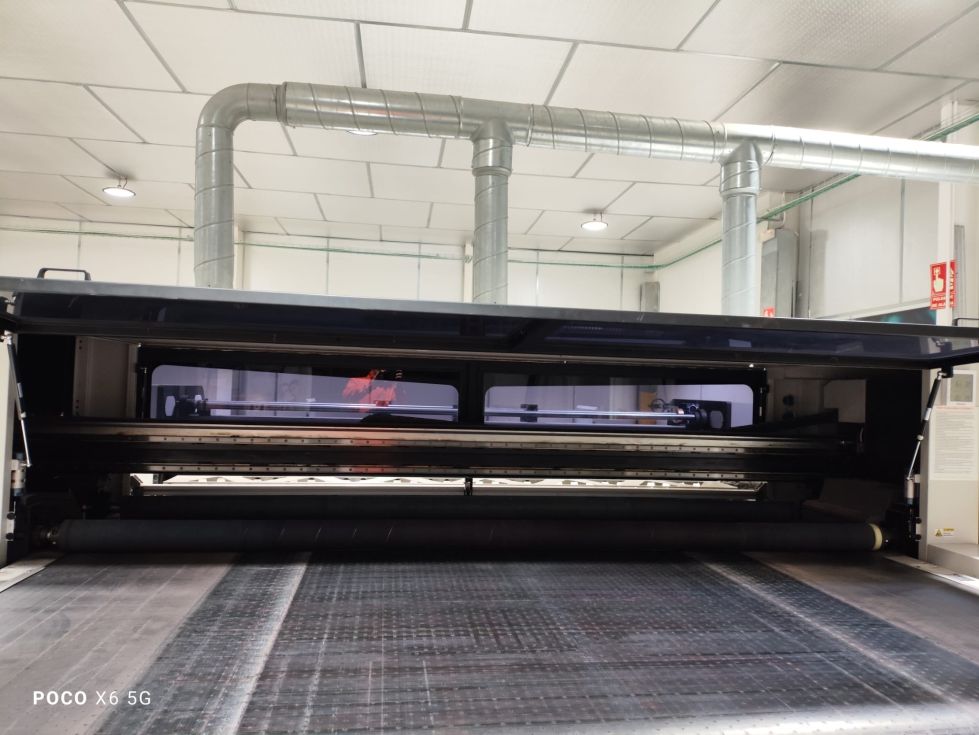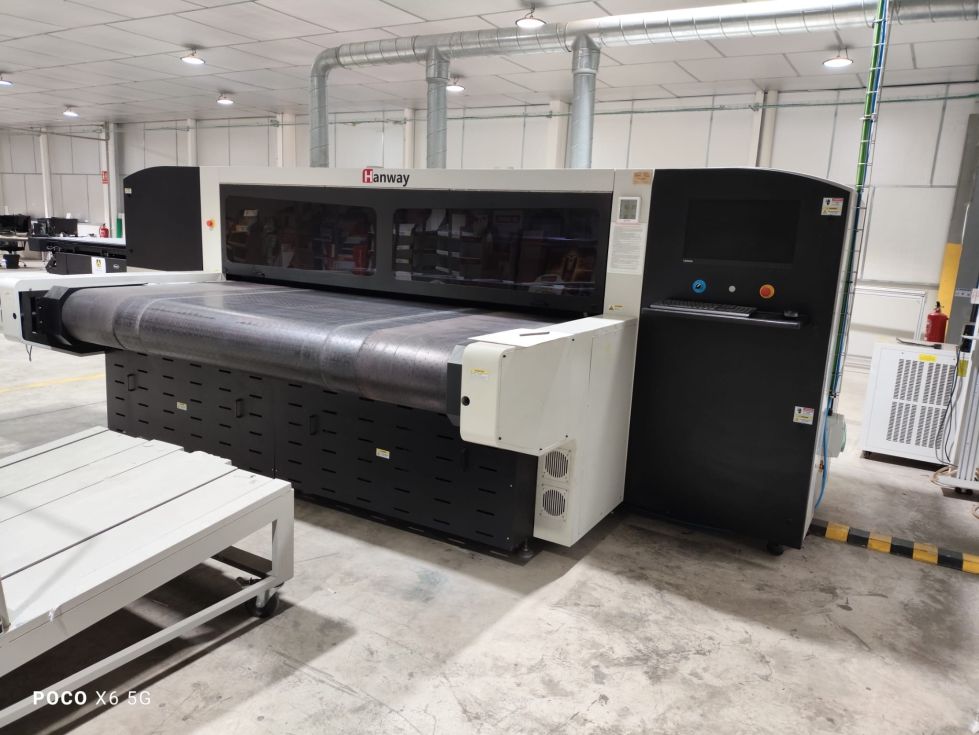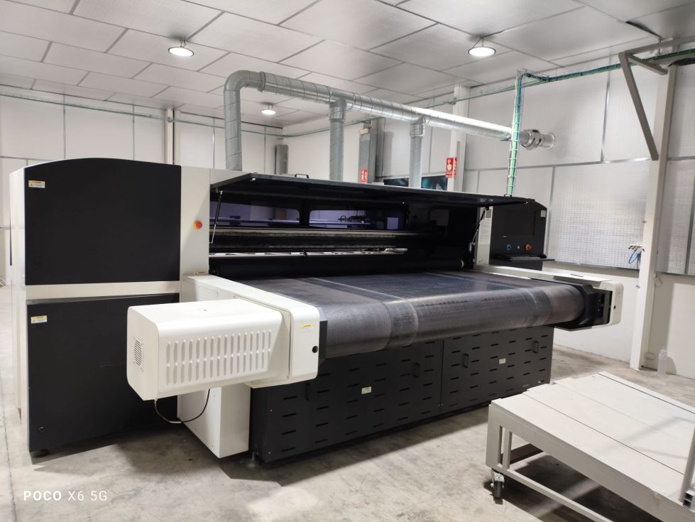 Puede imprimir sobre cualquier superficie, rígida o flexible. Tiene tintas UVI, cuatricromía.