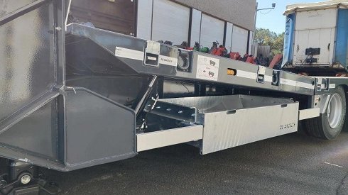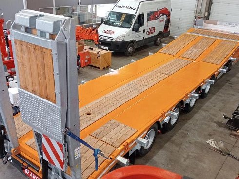 Semirremolque de 4 ejes, con capacidad de carga de 58 Tn, equipado con chasis G-light: para garantizar la máxima resistencia estructural, también en cargas concentradas y la TARA MÁS BAJA DEL SU CATEGORÍA. Además, suspensión neumática, 4 ejes marca ROR con capacidad de 12 Tn. cada uno, cama útil 9,5 m, carga útil de 48 tn. etc.