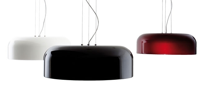 Lámpara disponible en versión a suspensión o de techo con luz directa y difusa. Se caracteriza por una estructura metálica barnizada, cuya parte inferior está cerrada por un disco de metacrilato prismático transparente que permite una iluminación óptima. Utiliza fuentes de fluorescencia electrónica (círculos de 40W+22W).
