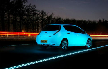 Nissan, además de colaborar en la iniciativa, también ha desarrollado un coche que brilla en la oscuridad. El Leaf de Nissan es un vehículo con un recubrimiento especial que también absorbe los rayos del sol, lo que provoca que sea fosforescente durante la noche.