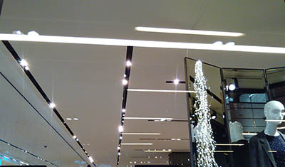 Proyectores LED en uno de los establecimientos de ropa del centro comercial