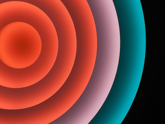 R: El color ha sido abordado a lo largo de los años por diversas disciplinas académicas (Física, Artes plásticas, Psicología...). De hecho, ésta es una de sus características principales: su “capacidad” para encantar a investigadores de todas las ramas del conocimiento. Por lo tanto, no sería justo escoger sólo a un autor. Para nuestro proyecto, escogimos a algunos de ellos porque nos parecieron interesantes en diferentes aspectos. Todos estos enfoques individuales y diferentes inspiran al espectador a seguir su propio camino para explorar, experimentar y comprender el color. Color Wheels es un tríptico que en un principio genera un entorno físico mínimo y básico. Cada sección consta de seis círculos dispuestos en capas concéntricas. A medida que la sutil secuencia de luz evoluciona, la experiencia visual se estimula gracias a que el brillo, el tono y la saturación cromática va cambiando sucesivamente. La luz se refleja en cada círculo mediante de forma jerarquizada. Con esto se intenta que la percepción se convierta en una manera de investigar las armonías de color y sus analogías, así como sus complementarios, de manera simultánea y secuencial a través de los contrastes de color y de la persistencia de las imágenes cromáticas. La constancia visual se ve desafiada durante el proceso.