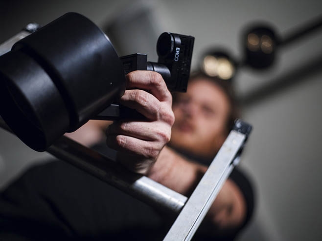 Para hacerlo, se ha escogido el modelo Pollux de la firma que iluminan las tres grandes pinturas al óleo con distribuciónes luminosas narrow spot de 2 vatios ycon proyectores de contornos de 6 vatios. Según el artista, se han utilizado estos proyectos “porque me permiten esculpir la luz en la obra de manera más controlada y refinada”. Este tipo de iluminación da más profundidad a los motivos y resalta las emociones de las caras de los personajes que aparecen en los cuadros.