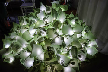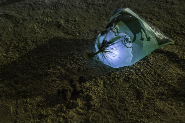 La última instalación de Luzinterruptus evidencia que la ciudad de Madrid tiene un problema higiénico con excrementos y fluidos de todo tipo. El montaje se ha realizado en la plaza de las Comendadoras, con medio millar de bolsas de plástico reciclado llenas de aire... y de luz, por supuesto.