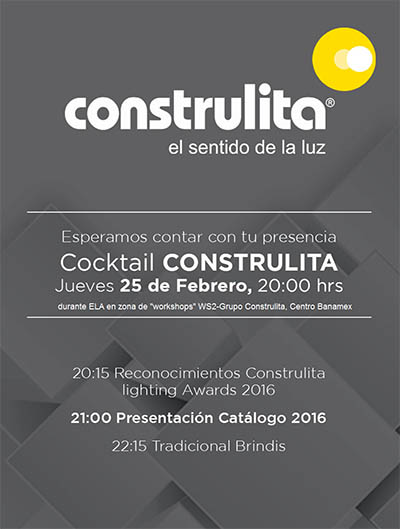 Todos los proyectos presentados se pueden consultar en el website de los Construlita Lighting Awards . Del mismo modo, está abierta la convocatoria para asistir a la entrega de dichos premios que tendrá lugar el próximo día 25 de febrero a las 20 horas (hora local de México), coincidiendo con la celebración de la ELA 2016 (Expo Lighting America), que se llevará a cabo del 24 al 26 de febrero en el Centro Banamex, en Ciudad de México.