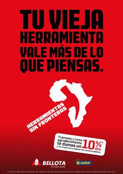 Bellota Herramientas ha puesto en marcha el proyecto ‘Herramientas sin fronteras’, una iniciativa solidaria para enviar a Burkina Faso herramientas de mano recogidas en los puntos de venta de Bellota, como ferreterías y establecimientos especializados, suministros de construcción, agrícolas o industriales. Con este proyecto, que la multinacional con sede en Legazpi desarrolla en colaboración con la asociación socio-cultural Burkina Faso També y transportes Azkar, Bellota avanza en su plan de Responsabilidad Social Corporativa, tras años comprometida con los procesos de calidad y respeto con el medio ambiente.