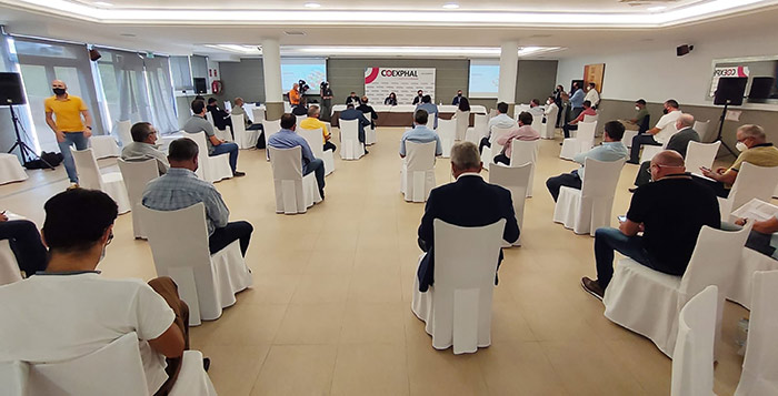 Luis Miguel Fernández, gerente de Coexphal ha abordado durante la Asamblea los retos a los que se enfrenta el sector en este nuevo periodo: “Hemos celebrado la 43ª Asamblea Anual, en COEXPHAL venimos haciendo asambleas de forma ininterrumpida desde 1977, y en esta ocasión aparte de analizar la campaña pasada que fue una campaña muy irregular, aunque se puede catalogar como ‘aceptable’, también hemos aprobado las cuentas anuales con resultados positivos y hemos abordado los retos que tenemos este año. Además de laS circunstancias especiales generadas por el Covid, donde todos estamos intensificando las medidas para minimizar los riesgos, tenemos otros retos que nos preocupan bastante como son: el BREXIT y cómo nos pueda afectar a partir del 15 de octubre; además de la incertidumbre de no saber cómo se va a aplicar la Ley de la Cadena y qué va a pasar cuando haya semanas con precios bajos”.