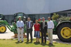 El acto, que tuvo lugar en las instalaciones que posee la compañía en Parla, contó con la presencia del gerente de marketing táctico, Alfonso Lorenzi y del gerente de formación de John Deere, Juan Carlos Aguado, quienes hicieron entrega de ambas máquinas al director de la ETSIA de la UPM Miguel Ángel Garcimartín, al director del Departamento de Ingeniería Rural de la ETSIA de la UPM Jacinto Gil y de la Profesora Titular de la ETSIA de la UPM, Pilar Linares.