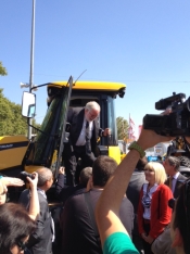 Precisamente el Ministro Arias Cañete, no dudo en subirse al tractor Fastrac de JCB, en la zona de la feria habilitada para demostraciones de los equipos, demostrando así su apoyo al sector.