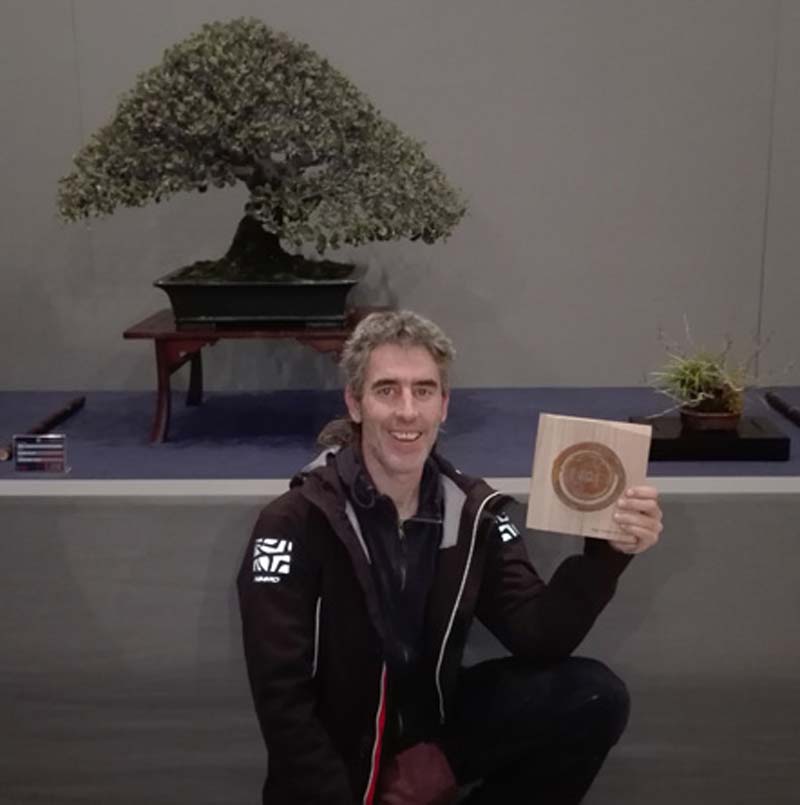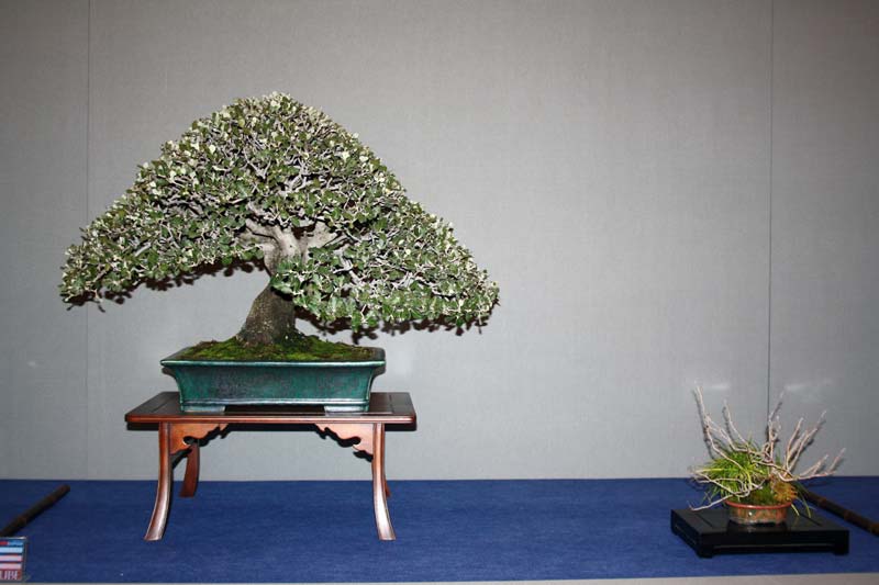 Este mismo ejemplar de encina, que ya había obtenido una Mención Especial del jurado en la Convención de Bonsáis de Vitoria celebrada el pasado mes de diciembre, participaba en la Convención Nacional de Aranjuez junto a un pino de cinco acículas (Pinus parviflora var. Pentaphylla).