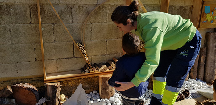 Desde la empresa que lidero a veces tengo la inmensa suerte de colaborar en proyectos donde acondicionamos espacios para explicar los procesos de interacción entre plantas, “bichos varios” y personas. En el año 2017 gracias a Nomad Garden junto a Teresa Cruz Navarro pudimos desarrollar un proyecto multidisciplinar en el colegio Andalucía del Polígono Sur para transformar el espacio con la acción de los polinizadores. El “Meteorito polinizante”, un hotel de insectos que es a día de hoy un gran icosaedro que sirve de refugio a abejas y avispas solitarias entre otros seres que ayudan e interactúan en los procesos hortícolas y jardineros de este colegio junto a los niños y niñas en el espacio que pudo recuperarse con este maravilloso proyecto.