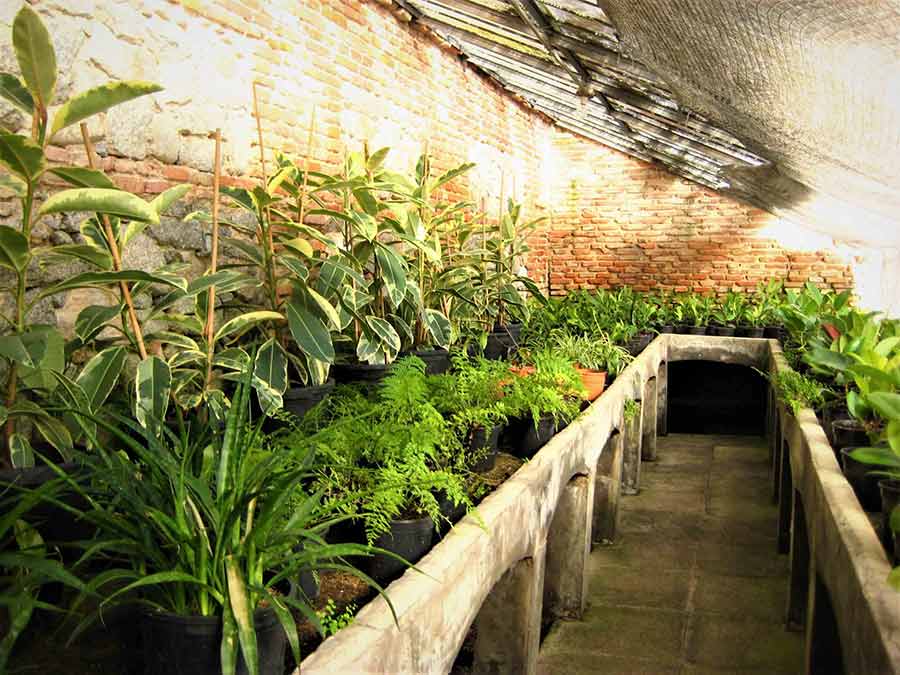¿Qué otras instalaciones o elementos, aperos, instrumentos… se pueden encontrar en el vivero?El Vivero además de estas instalaciones cuenta con otras estructuras y equipamientos que complementan el recinto para la realización de sus funciones, como son platabandas, sombreados (actualmente cuenta con unos modernos sombreados de construcción reciente con automatismo y riego automatizado), umbráculos, túneles pequeños que se establecen entre los invernaderos decimonónicos pequeños, que se montan y se desmontan según las necesidades, cajoneras, talleres, almacenes y oficinas. También se cuenta con un aula multiusos, actualmente dedicada al archivo de documentación y al estudio de todo este material histórico.