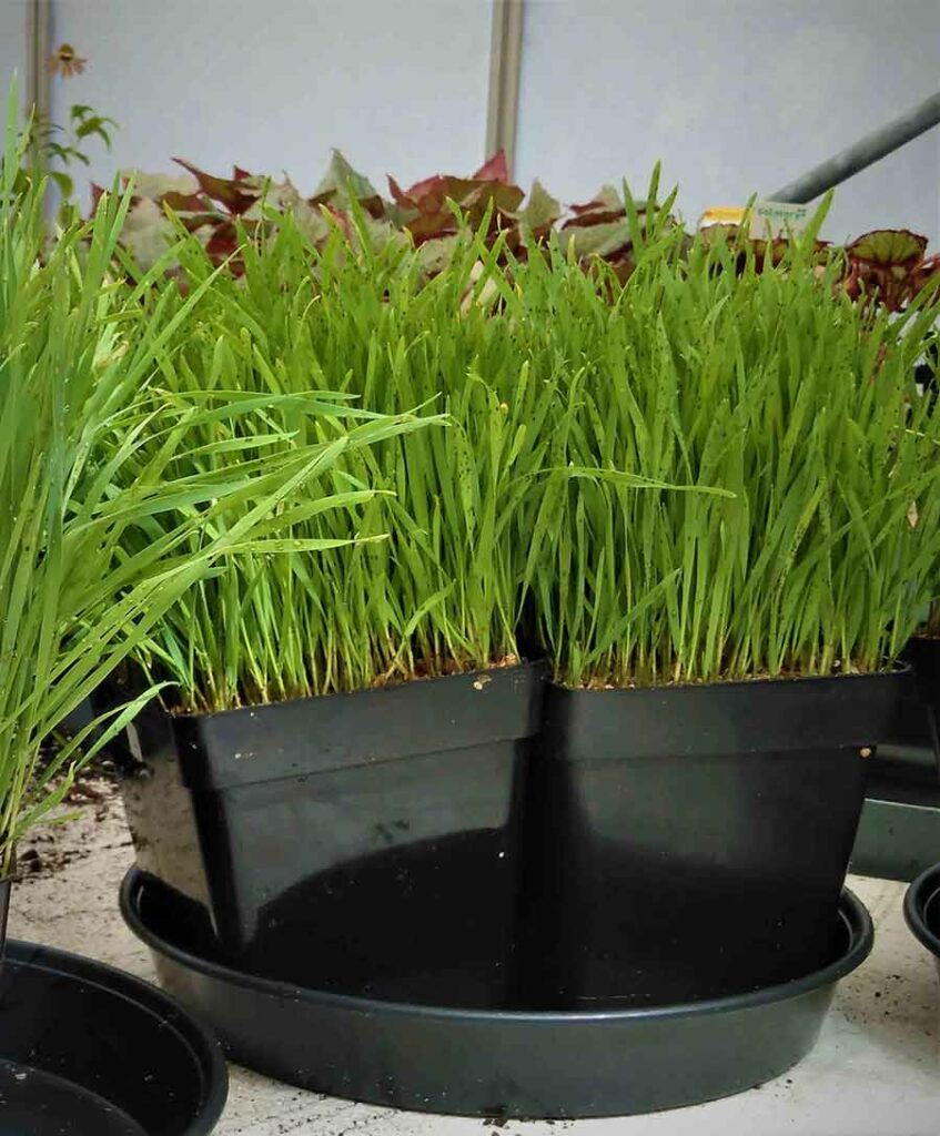 Es muy importante la presencia de ciertas plantas que nos sirven como reservorios, con suficiente población parásita (por ejemplo, pulgones) que nos sirven como base para el desarrollo de la población de auxiliares que soltamos. Un ejemplo de ello son los banker de cebada, que infectamos nosotros mismos con el pulgón Rhopalosiphum padi, pulgón específico de la planta de cebada y que no tiene interés en otros cultivos y que sin embargo nos sirve para que la suelta que hacemos de Aphidius (avispilla parasitoide de pulgón) progrese en esos banker y también en el resto de los pulgones que pueda haber en los otros cultivos del Vivero.