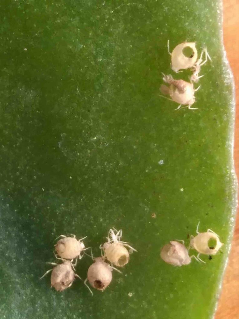 De modo parecido usamos las plantas de la Haba (Vicia faba), la Alcachofa (Cynara scolymus), Artemisa (Artemisa sp), Lobularia (Lobularia marítima) que se infectan de pulgón y que nos permiten ampliar nuestras tropas de Aphidius, parasitando y alimentándose del interior de los jugos de estos y convirtiéndolos en momias de las que saldrá un afidio en forma adulta.