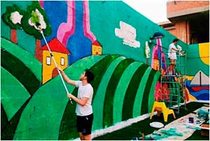 Durante la jornada solidaria, celebrada la semana pasada en Madrid, para la que Bruguer ha donado 78 litros de pintura, los alumnos del Grado en Diseño Multimedia y Gráfico de ESNE han diseñado y pintado el muro exterior de la zona deportiva de la Casa Ronald McDonald de Madrid, con el objetivo de dotar de alegría e ilusión los espacios del centro a través del poder regenerador del color. Este pintado se suma al resto de acciones de responsabilidad social que lleva a cabo Bruguer dentro de su programa Let’s Colour con el que llevan el color a las personas y lugares que lo necesitan.