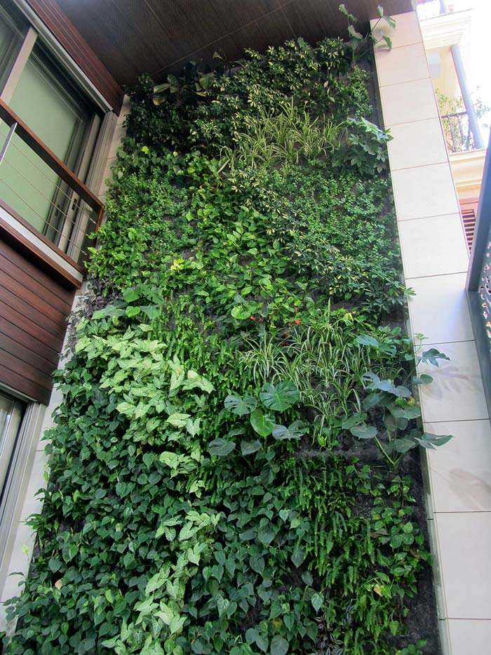 Asimismo, de este nuevo proyecto cabe destacar la utilización de dos especies en particular: el Philodendron red imperial, una planta originaria de América del Sur, que por sus características es óptima para patios interiores, y el Ficus pumila, nativo de Asia del este, planta trepadora de gran frondosidad que obtuvo el premio de la Sociedad Hortícola Real de Mérito de Jardín en julio del 2013.