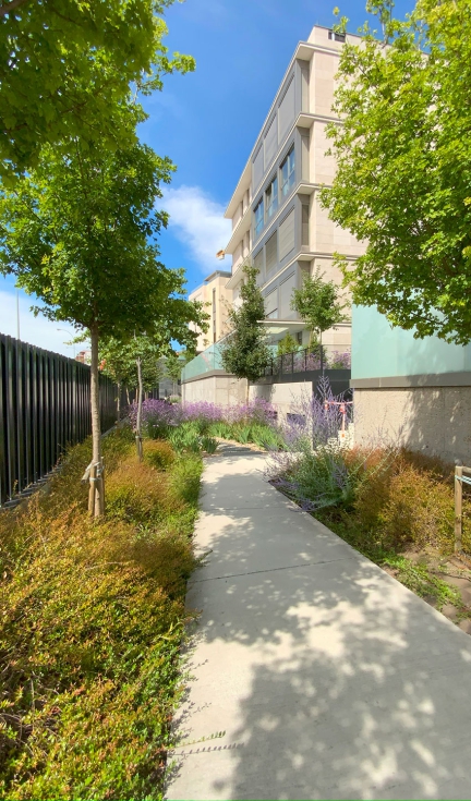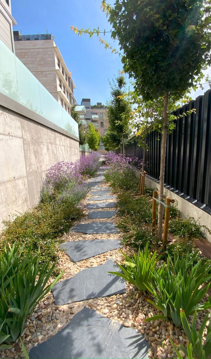 Cambios cromáticos con diferentes tonalidades de vegetación en el otoño, ramas sin hojas durante el invierno con estructuras arbóreas muy definidas, floraciones y abundante vegetación en primavera y verano se irán sucediendo año tras año, haciendo sentir la idea del jardín a las personas que pasearán y cruzarán todos los días este espacio.