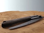 - Hoja curva de 240 mm de longitud: con dientes endurecidos por inducción eléctrica y un diseño triple dentado sin separación, que permite serrar con un esfuerzo mínimo (con 8 dientes cada 30 mm).