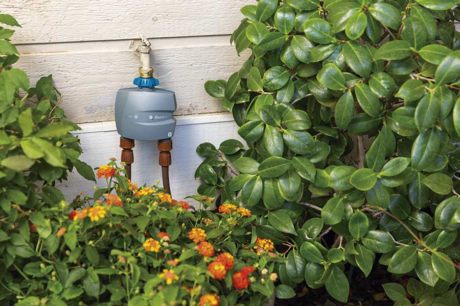 El concentrador establece un enlace wifi con el programador, hasta 50 m de distancia, y puede gestionar hasta cuatro programadores colocados en diferentes zonas o para regar de forma diferente según las necesidades de las plantas (microrriego para el huerto, aspersión para el césped…). En caso de que se interrumpa la comunicación, el programador mantiene los ajustes en la memoria.