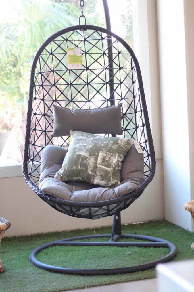 Por tipos de muebles, un imprescindible que no puede faltar en tu terraza o jardín son las tumbonas y los asientos colgantes. Hamacas, sillas, columpios… Todos ellos multiplicarán tus momentos de puro relax. Idóneos para disfrutar de un buen libro o una buena siesta. Para mayor confort, ubícalos en zona de sombra. Será tu oasis perfecto para los días en los que el sol caliente fuera con más fuerza.
