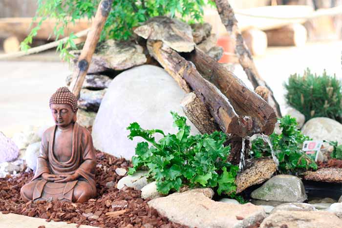 El secreto para sentirse en el paraíso a menudo depende de los pequeños detalles. Velas, cojines, pequeñas fuentes o figuras decorativas crearán ambientes especiales y aportarán paz y armonía a nuestros espacios exteriores. Por temática, gozan de gran popularidad como decoración para jardines las figuras de Buda. Si dispones de espacio, no dudes en crear tu “zona zen” con una de ellas.