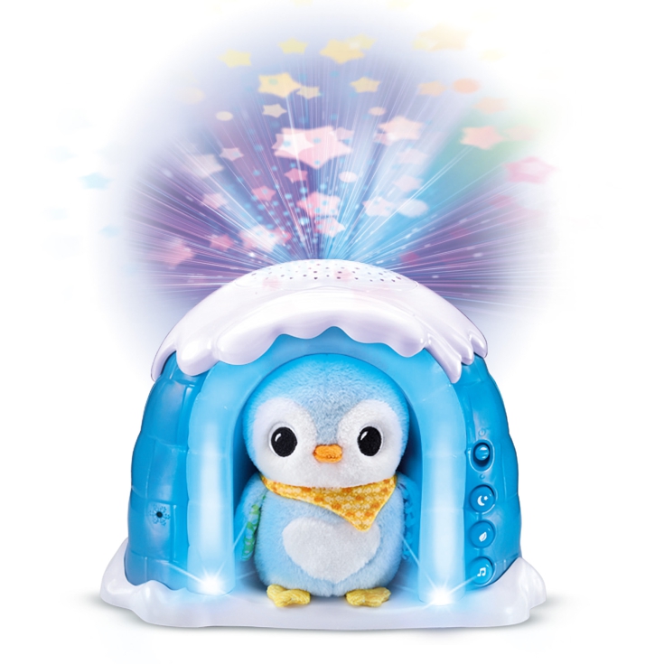 Es la novedad que acompaña a los más pequeños a la hora de dormir. Con un sensor que detecta su llanto, este iglú con pingüino tiene melodías para escuchar todo el día, sonidos de la naturaleza y canciones de cuna. Su cúpula lanza un cielo estrellado en cuatro colores que invita al bebé a fijar la mirada y relajarse, mientras el contorno iluminado le da sensación de seguridad.