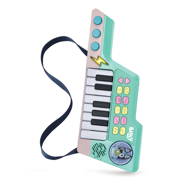 Un instrumento musical 2 en 1 para niños, inspirado en la divertida serie de televisión. El pequeño podrá explorar 8 teclas musicales, 10 botones de instrumentos y efectos, y 3 botones en el mástil para cambiar de sonidos mientras crea sus propias melodías. Al combinar teclado y guitarra en un solo juguete, tu hijo podrá desarrollar su creatividad musical, mejorar su coordinación y disfrutar al máximo con sus personajes favoritos.