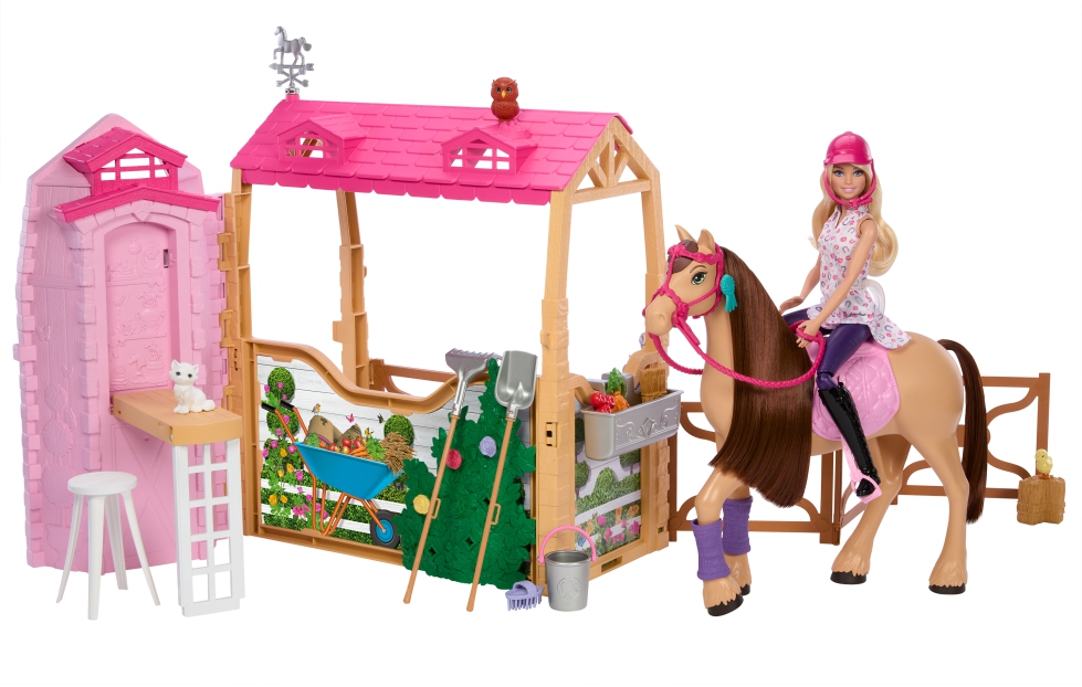 Basado en la serie de Netflix ‘Los Misterios de Barbie: En Busca de la Yegua Perdida’, llega Tornado, un caballo de juguete interactivo con más de 20 sonidos y muchísimas formas distintas de jugar. Este caballo de Barbie baila, pestañea, reproduce canciones inspiradas en la serie y hace sonidos divertidos como relinchos, ruidos de masticar, galopadas y mucho más. Los accesorios, como un trofeo, comida, un cepillo y un cubo para comer, permite que los peques echen su imaginación a volar con Barbie y su nuevo amigo, el caballo Tornado. Los colores y la decoración pueden variar.